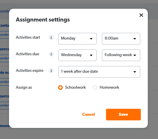 Before today, teachers were only able to assign activities to start immediately - as soon as you click “assign”, it is available for your students straight away. There was also no ability to set a “due date” - the activity remains available on the student path until you unassign it, even if it was completed months ago.