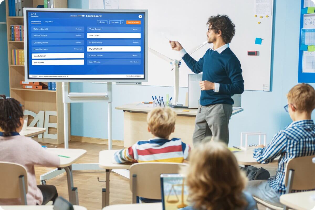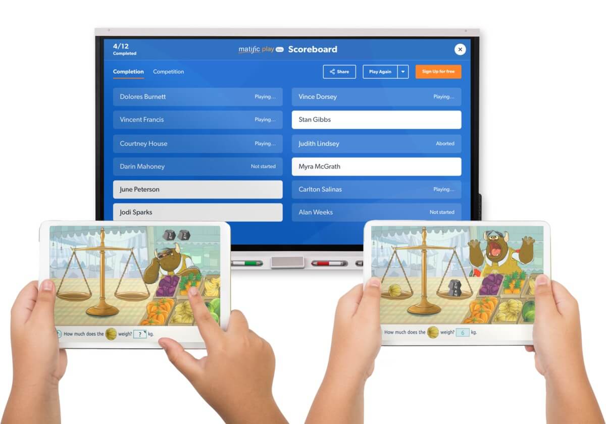 Matific Play-ek saio dibertigarri eta lehiakor bat sortzeko aukera ematen dizu, milaka ariketa matematiko interaktiboetatik abiatuta. Saio bat konfiguratzea eta kodea partekatzea erreza da.